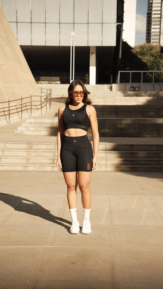 Top com material de alta sustentabilidade, que garante conforto, firmeza e elegância. Ideal para treinos seguros, estilosos e com consciência ambiental.